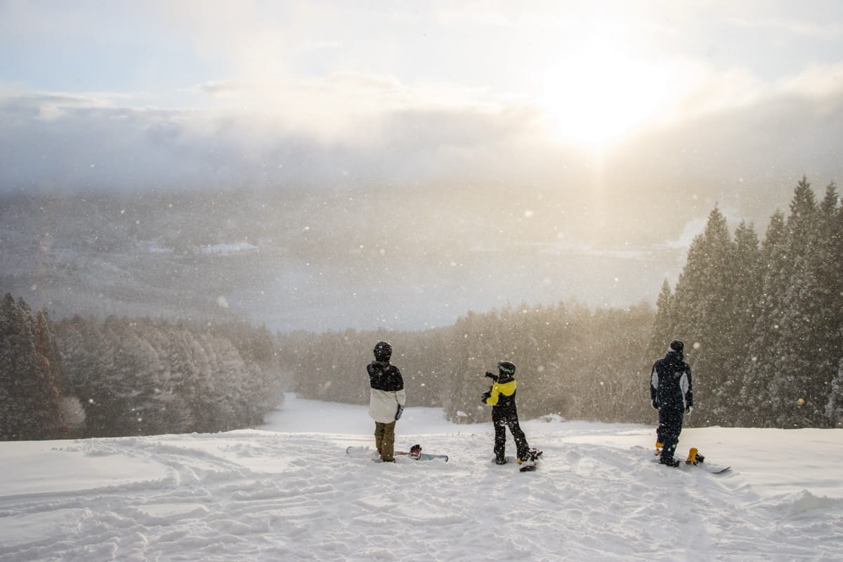 此方案會在滑雪場開始營業前的清晨,搭乘雪上摩托車前往山頂,欣賞朝陽從全日本透明度數一數二的青木湖升起後,接著享受滑過布滿新雪的雪道。