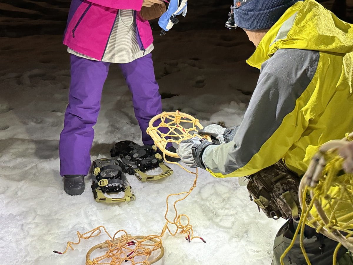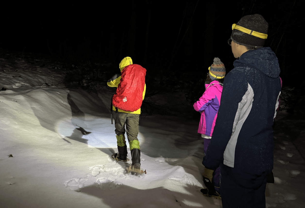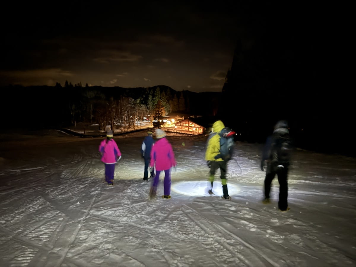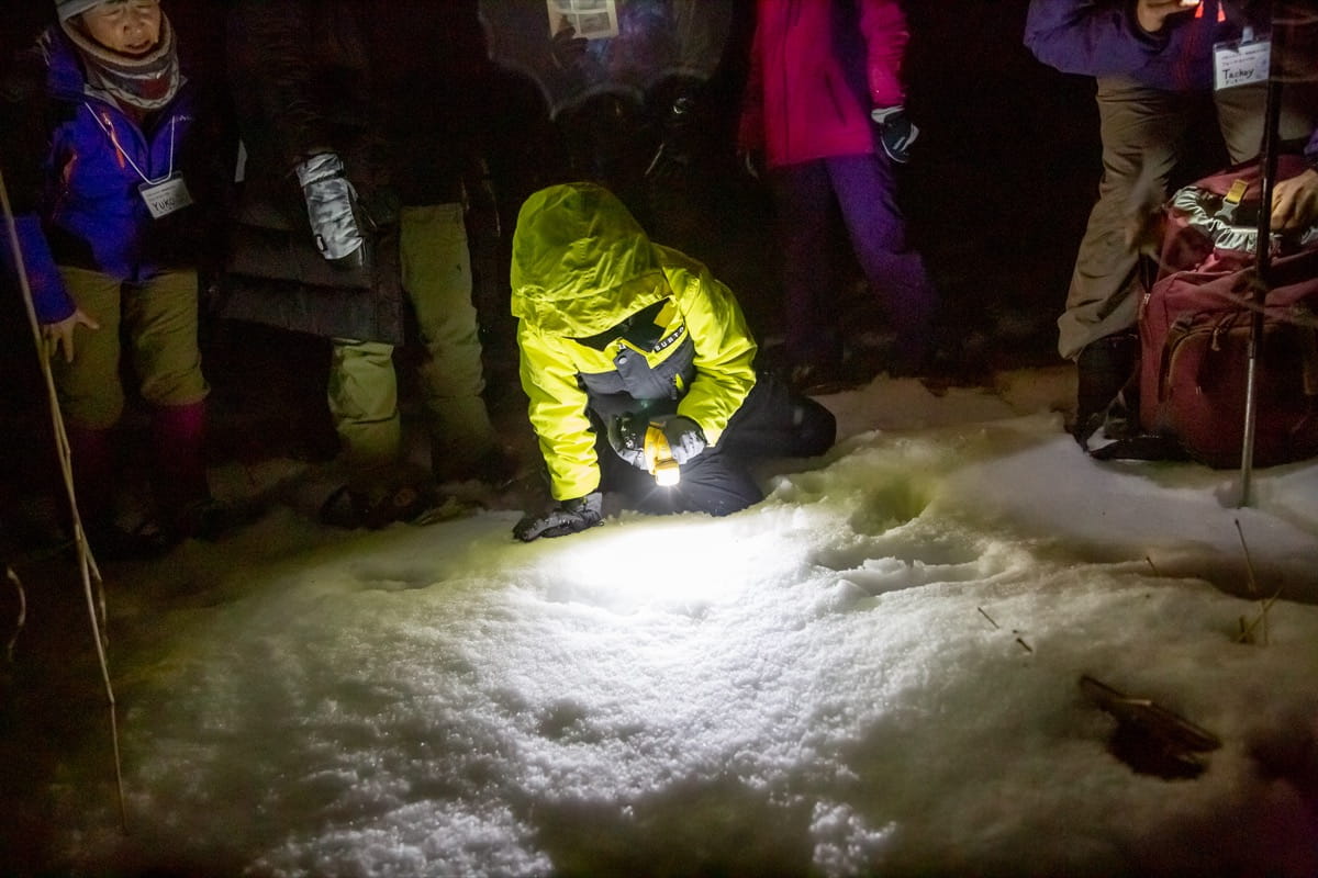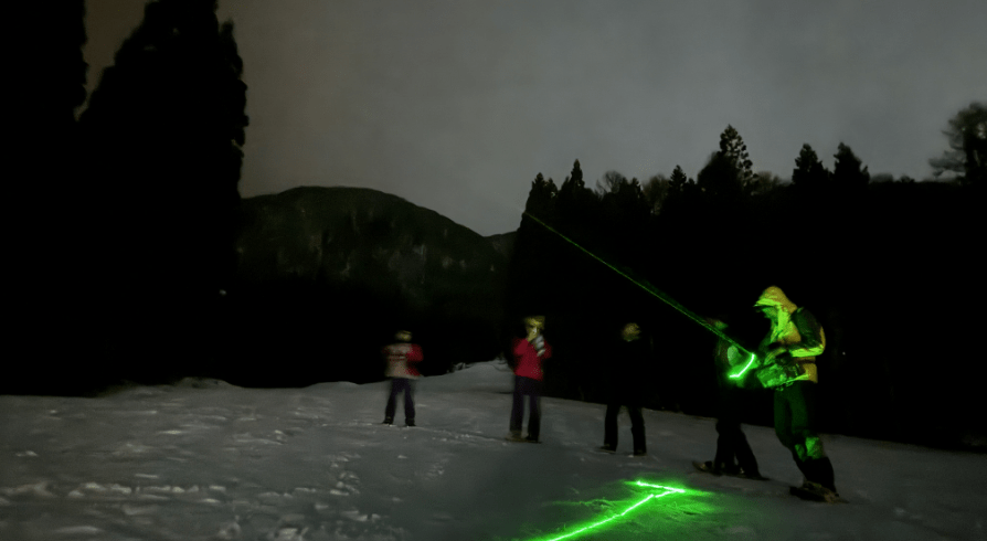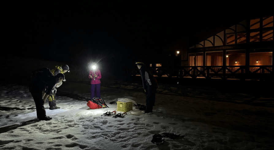 此方案會搭乘雪上摩托車進入森林,邊尋找夜行性的日本髭羚,邊在森林中漫步。